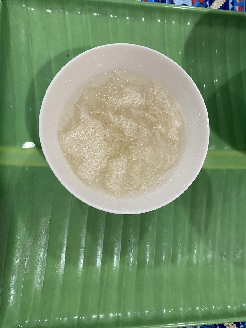 - Bẻ nhỏ miếng yến, ngâm trong nước khoảng 20-30 phút cho yến mềm ra.