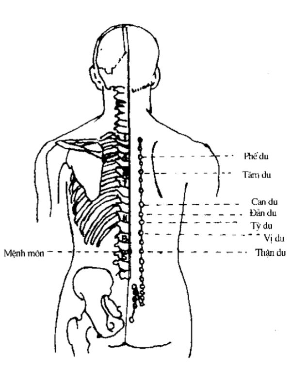 - Nếu người có chứng đờm nhiều, ngực tức, chán ăn, khó thở, miệng đắng, bấm huyệt Tỳ du ở hai bên lưng, cả huyệt Vị du, tâm du, bấm mạnh một lúc, mỗi huyệt 1 phút.