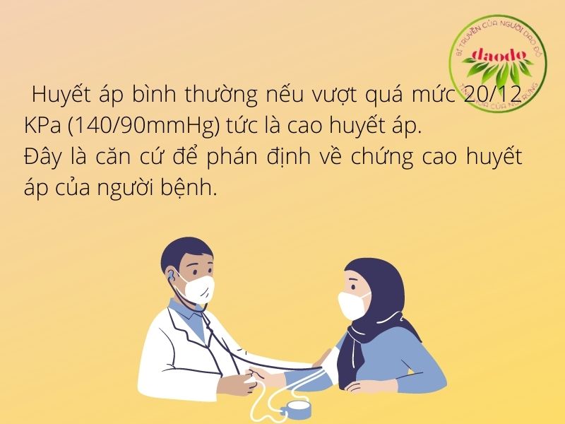- Nhìn chung, huyết áp bình thường nếu vượt quá mức 20/12 KPa (140/90mmHg) tức là cao huyết áp. Đây là căn cứ để phán định về chứng cao huyết áp của người bệnh.