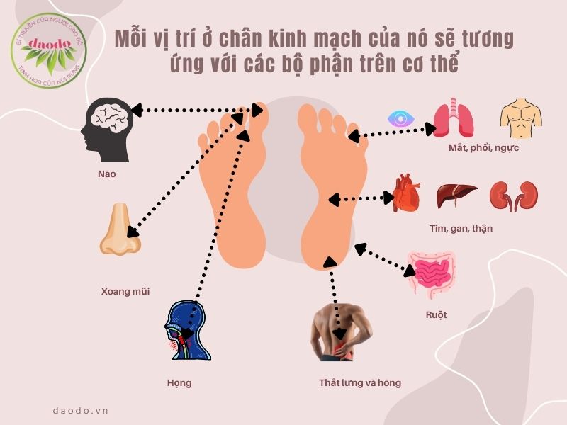 - Giữa gan bàn chân tương ứng với tim, gan, thận.