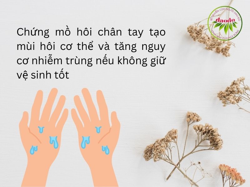 - Tiết mồ hôi quá mức ở khu vực chân tay, gây ra đôi khi cảm thấy ướt đẫm và bất tiện trong sinh hoạt hàng ngày.