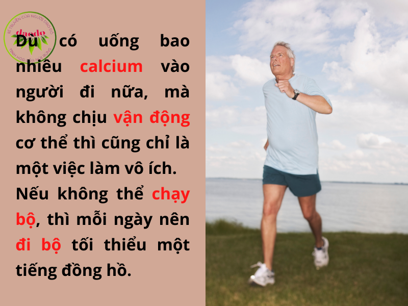 Do đó, chúng ta thấy rằng dù có uống bao nhiêu calcium vào người đi nữa, mà không chịu vận động cơ thể thì cũng chỉ là một việc làm vô ích.