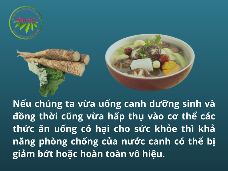 - Không nên cho thêm bất cứ một chất liệu nào khác vào thành phần của canh dưỡng sinh. Vì nó có thể làm cho canh biến chất và phản tác dụng.