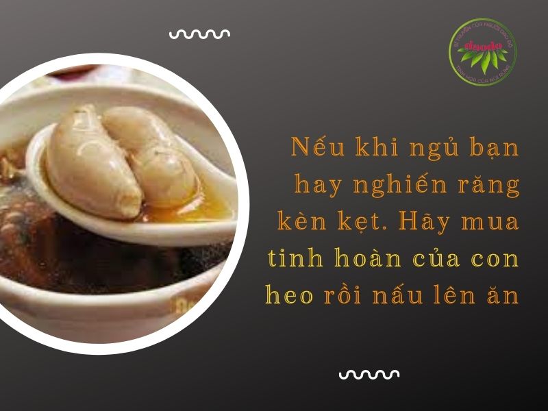 - Nếu khi ngủ bạn hay nghiến răng kèn kẹt. Hãy mua tinh hoàn của con heo rồi nấu lên ăn.