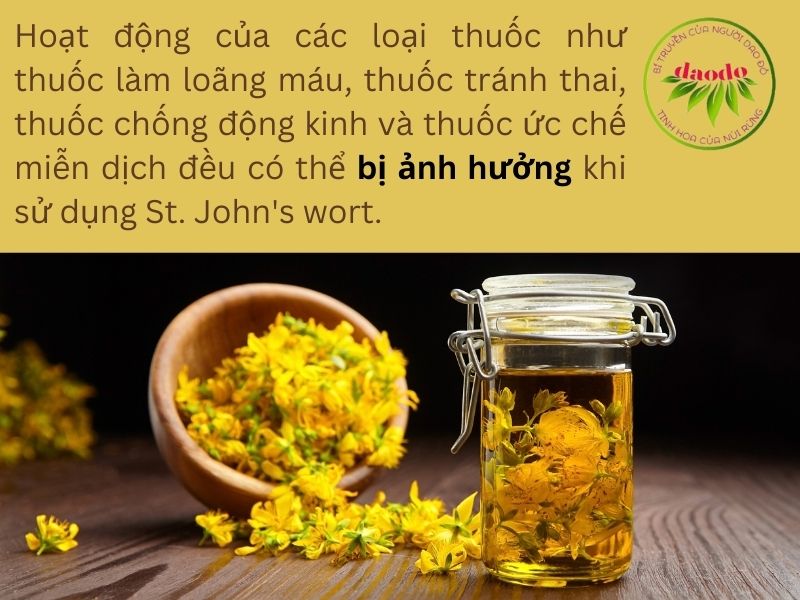 Hoạt động của các loại thuốc như thuốc làm loãng máu, thuốc tránh thai, thuốc chống động kinh và thuốc ức chế miễn dịch đều có thể bị ảnh hưởng khi sử dụng St. John's wort.