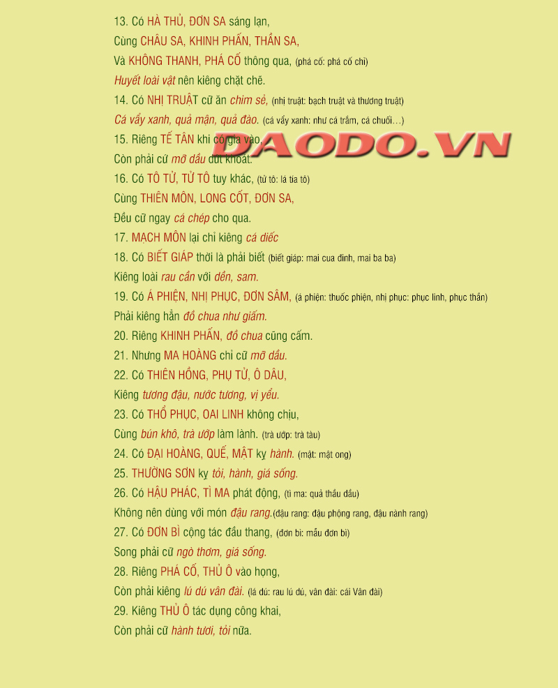 25. THƯỜNG SƠN kỵ tỏi, hành, giá sống.