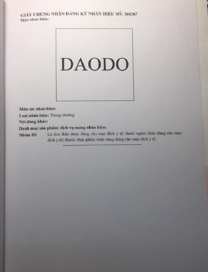 Chính mối lương duyên với nghề thuốc, sự gắn bó với đồng bào người Dao Đỏ đã đưa chúng tôi đến với ý tưởng và mong muốn được lan tỏa bài thuốc tắm hữu ích này với mọi người. Bên cạnh đó là những bài thuốc cổ truyền quý giá của người dân tộc Dao Đỏ trên vùng núi cao Tây Bắc. Thương hiệu Daodo đã được bảo hộ bởi Cục Sở hữu trí tuệ, như vậy sẽ tránh được tình trạng hàng giả, hàng nhái đối với sản phẩm này.