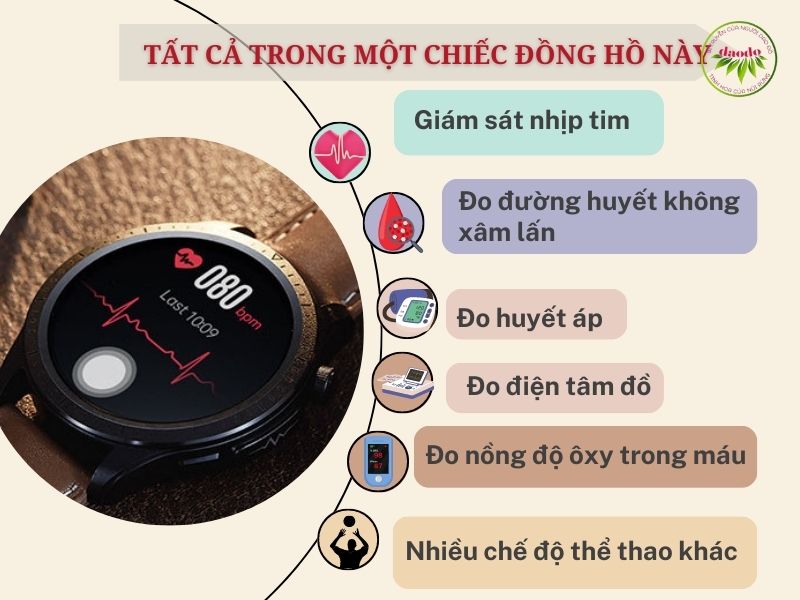 Không chỉ có tác dụng đo đường huyết, chiếc đồng hồ thông minh này còn đo được điện tâm đồ, giám sát nhịp tim từ dây đeo, đo huyết áp, đo nồng độ ôxy trong máu và nhiều chế độ thể thao khác. Với chiếc đồng hồ thông minh này, chúng ta không chỉ chăm sóc sức khỏe cho mình tiện lợi hơn mà còn giúp chăm sóc từ xa cho người thân và bạn bè.