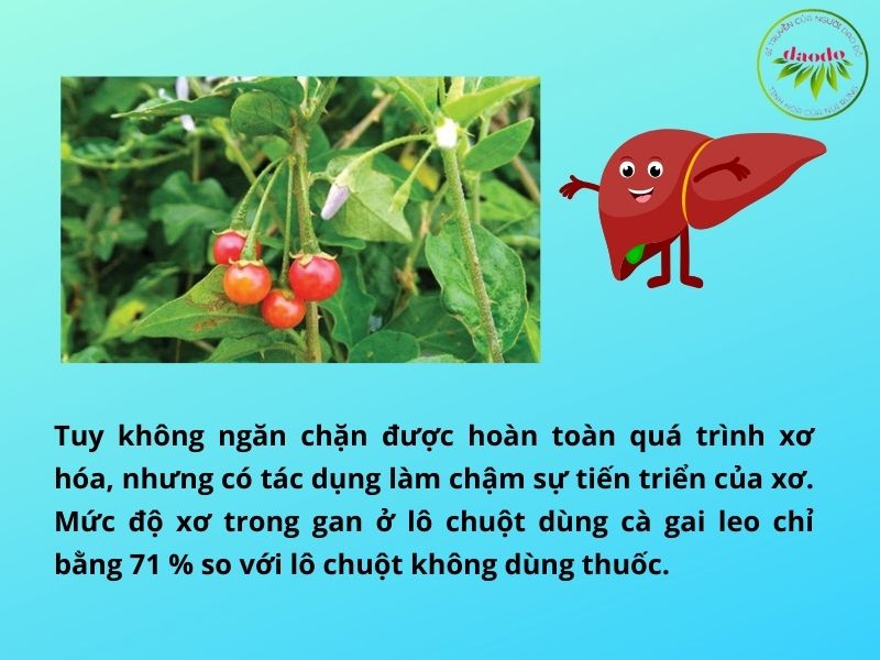 Việc nghiên cứu thăm dò khả năng ngăn chặn tiến triển xơ của cà gai leo trên mô hình gây xơ gan thực nghiệm của Maros cho thấy: sau ba tháng gây xơ gan trên chuột cống trắng, xơ gan hình thành rõ rệt, thể hiện trên các chỉ tiêu hóa sinh và tổ chức học. Cà gai leo với liều cho uống hằng ngày 6gam/kilôgam thể trong chuột, tuy không ngăn chặn được hoàn toàn quá trình xơ hóa, nhưng có tác dụng làm chậm sự tiến triển của xơ. Hàm lượng colagen trong gan ở lô chuột dùng cà gai leo chỉ bằng 71 % so với lô chuột chứng gây xơ không dùng thuốc.