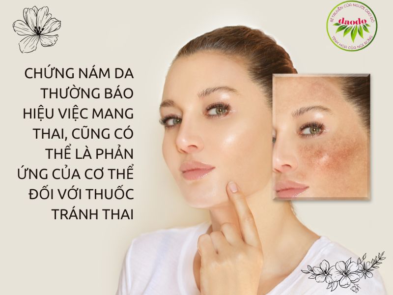Nám da cũng có thể là phản ứng của cơ thể đối với thuốc tránh thai hay liệu pháp thay thế estrogen. Tuy vậy, trong vòng vài tháng sau khi ngưng dùng những loại thuốc này hay sau khi sinh, các vết nám sẽ mở dần.