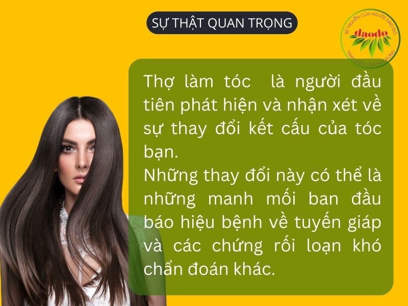 Khi tuyến giáp (có chức năng điều khiển hoạt động chuyển hóa) không sản xuất đủ hormone thì tóc sẽ bắt đầu phát triển chậm lại cũng như các chức năng khác của cơ thể sẽ suy giảm. Kết cấu của tóc thay đổi còn báo hiệu tình trạng thiếu iốt (cũng được đề cập trong bệnh về tuyến giáp).