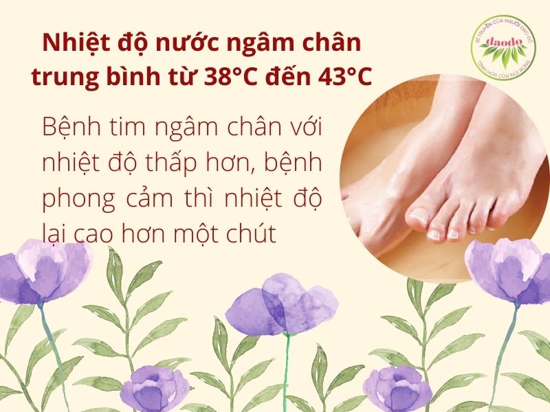 Nhìn chung, do khí hậu từng nơi khác nhau nên nhiệt độ nước ngâm chân khác nhau, về cơ bản mức trung bình từ 38°C đến 43°C, thấp nhất không nên tụt dưới 38°C.