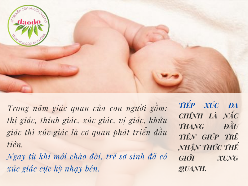 Trong năm giác quan của con người gồm: thị giác, thính giác, xúc giác, vị giác, khứu giác thì xúc giác là cơ quan phát triển đầu tiên. Ngay từ khi mới chào đời, trẻ sơ sinh đã có xúc giác cực kỳ nhạy bén. Tiếp xúc da chính là nấc thang đầu tiên giúp trẻ nhận thức thế giới xung quanh.