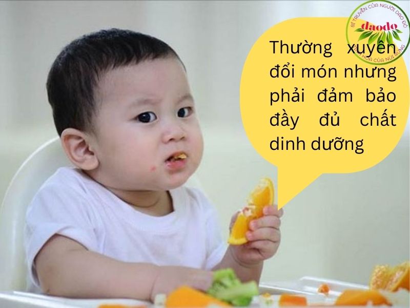 - Thường xuyên đổi món nhưng phải đảm bảo đầy đủ chất dinh dưỡng cho khẩu phần ăn cho trẻ.