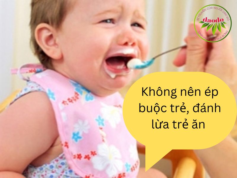 - Không nên ép buộc trẻ, đánh lừa trẻ khi cho trẻ ăn sẽ tạo nên tâm lý chán ăn cho trẻ.