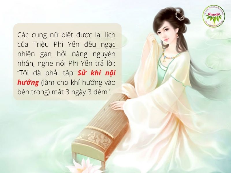 Các cung nữ biết được lai lịch của Triệu Phi Yến đều ngạc nhiên gạn hỏi nàng nguyên nhân, nghe nói Phi Yến trả lời: “Để cho âm đạo co lại tôi đã phải tập “Sử khí nội hướng” (làm cho khí hướng vào bên trong) mất 3 ngày 3 đêm.