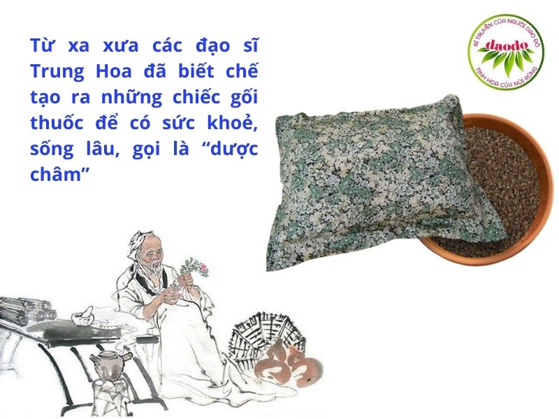 Từ xa xưa các đạo sĩ Trung Hoa đã biết chế tạo ra những chiếc gối thuốc để có sức khoẻ, sống lâu, gọi là “dược châm”. Có rất nhiều truyền thuyết xung quanh cái gối.